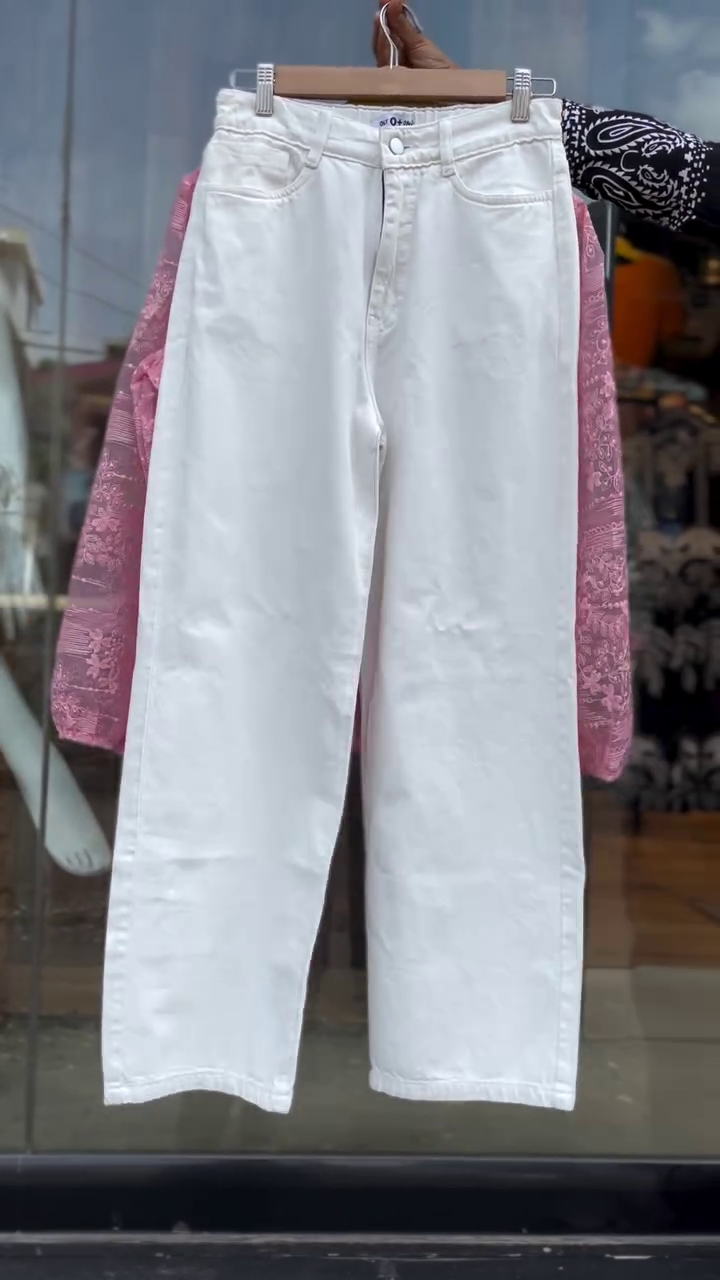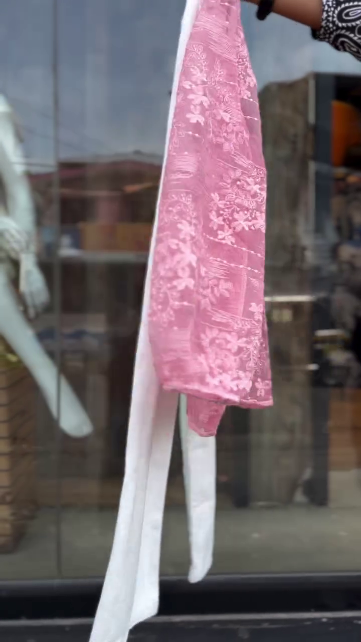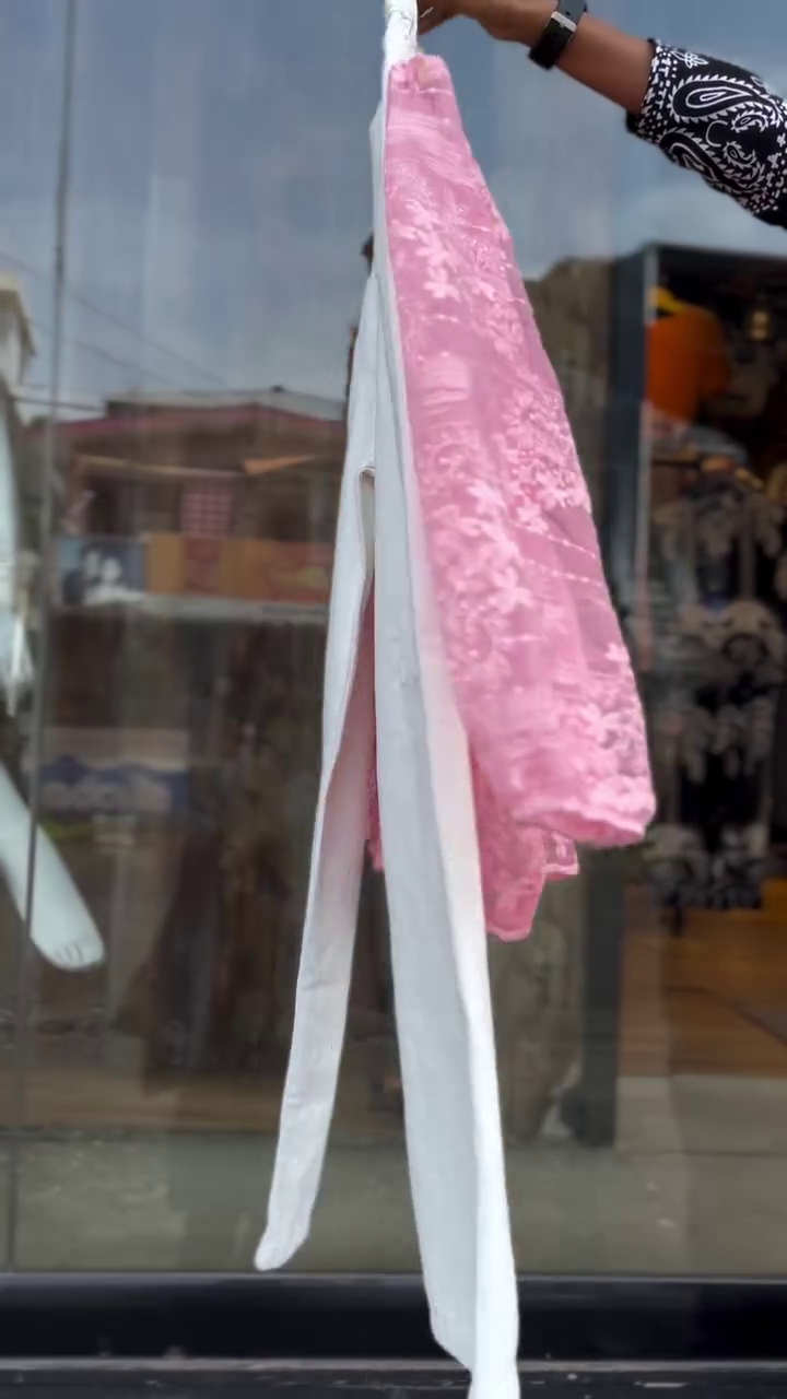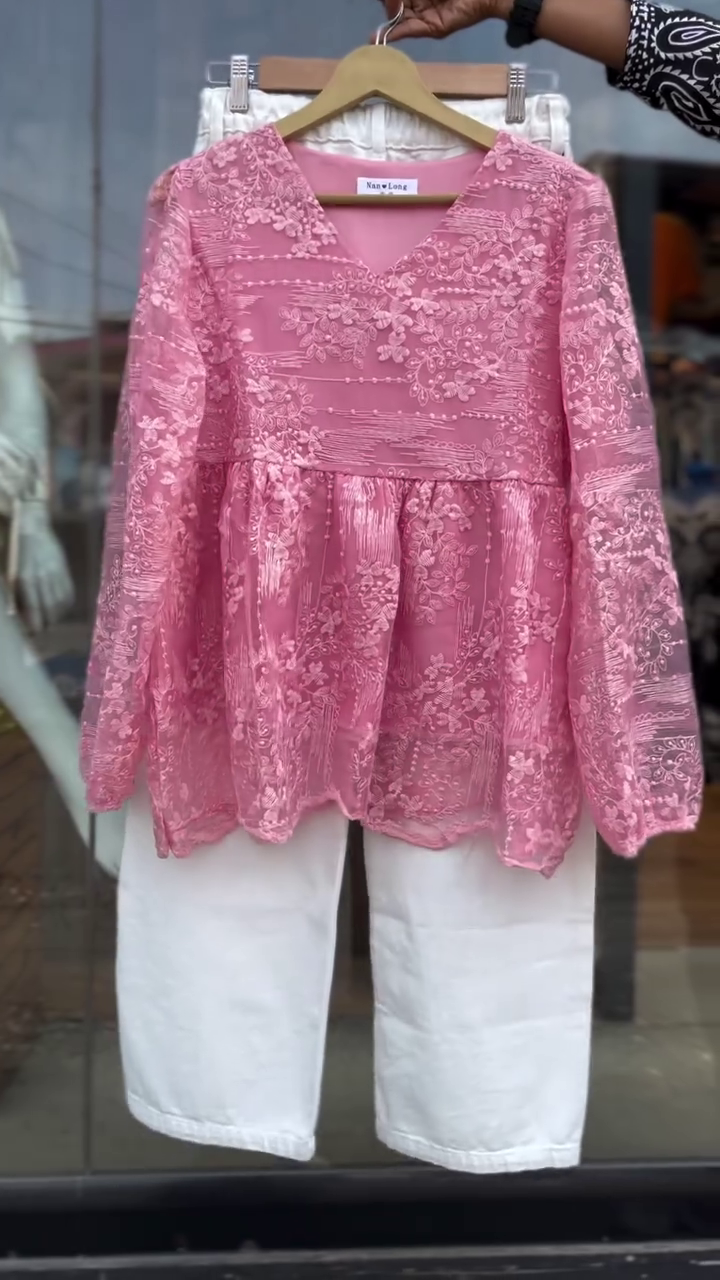 🌸 Elegant Pink Lace Top & White Pants Set 🤍